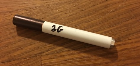 I ordered the kit in the pic below from Groupon for the very reasonable $27. That’ll take a couple of days to get here – so in the meantime I’ll try the “one hit” pipe. They made it to look like a cigarette which I truly hate (as afore mentioned) so I altered it with a Sharpie and added a little personalization. So tonight I’m not taking an Ambien for the first time in years . Nighttime is really rough- I have intense spasticity and pain- so I’m super psyched to see if it works.